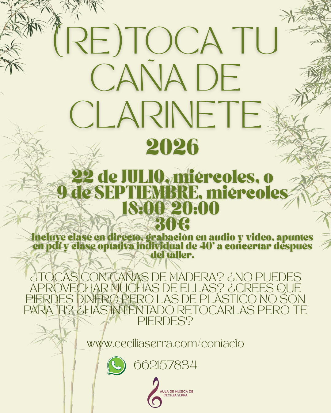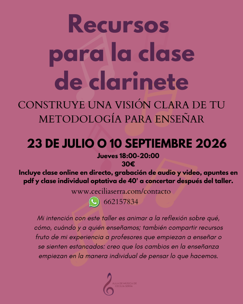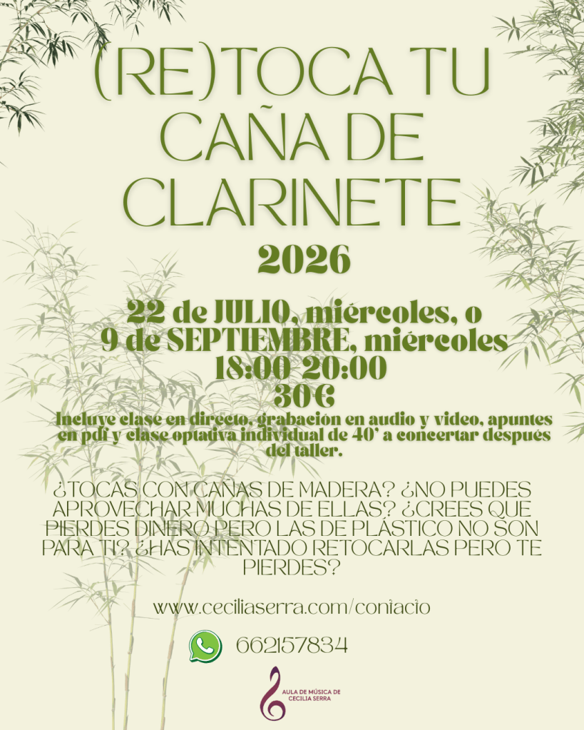 Este verano abro dos convocatorias de los cursos-talleres online de respiración RECONÓCETE EN TU RESPIRACIÓN, cañas RETOCA TU CAÑA DE CLARINETE y pedagogía RECURSOS PARA LA CLASE DE CLARINETE.